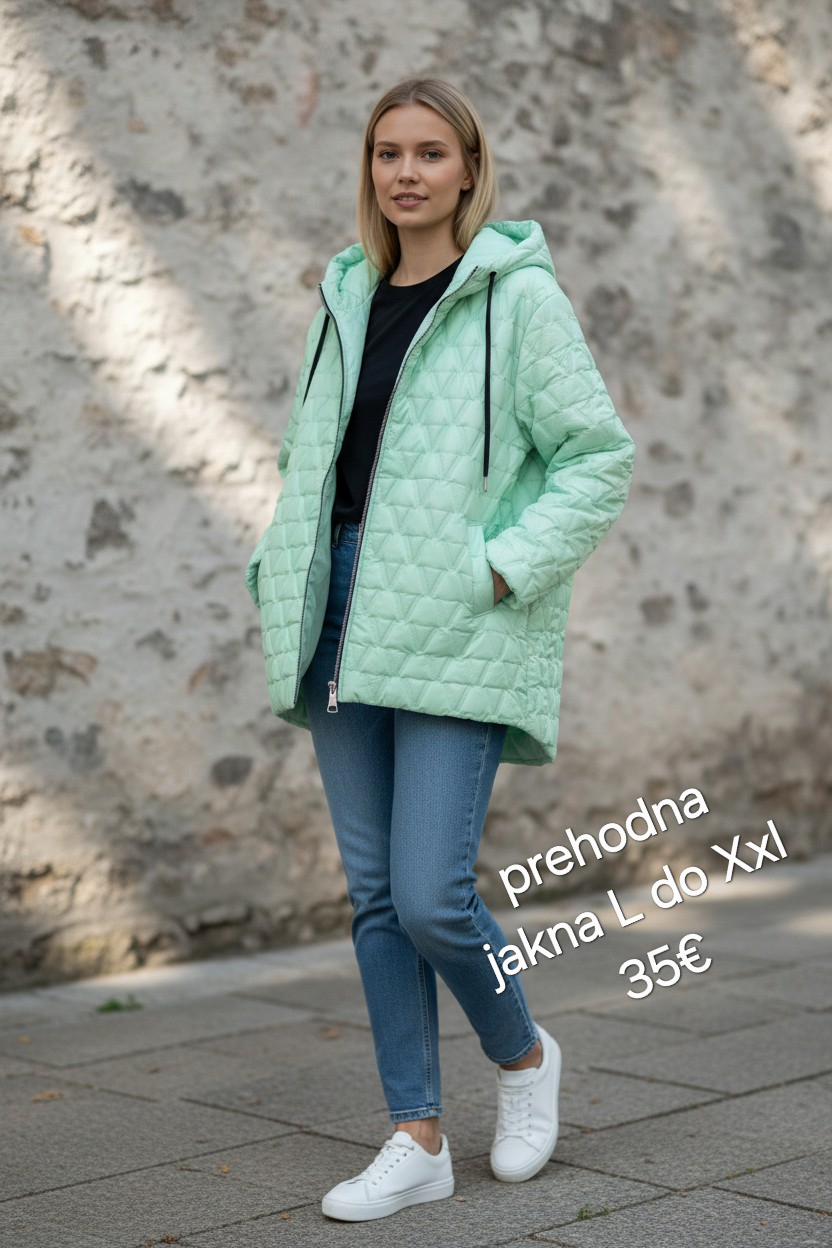 Na sliki jakna izgleda mint, je pa nežno zelenkasta.