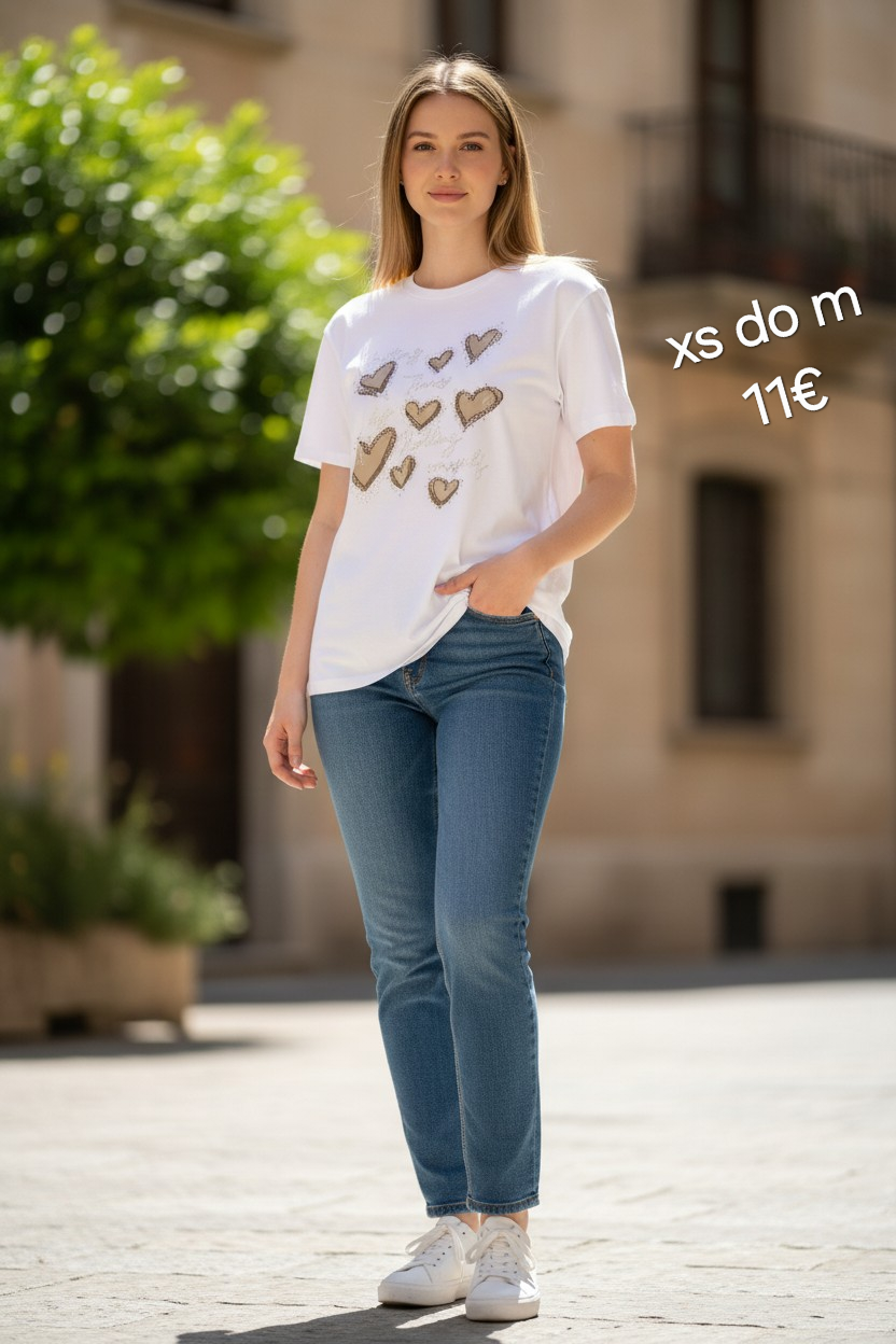 MAJICA BELA Z BEŽ SRČKI