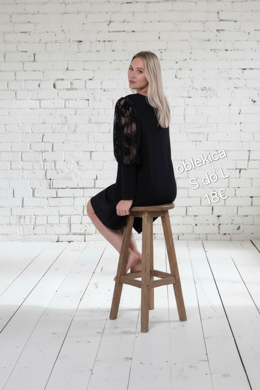 OBLEKICA ČRNA S ČIPKO NA ROKAVU